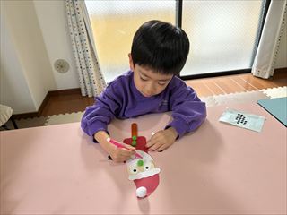 年少〜年長までを対象に、さまざまな教材を使い楽しみながらリスニング・ライティング・リーディングの総合力と、英語でのコミュニケーションスキルを身につけます。幼児期に大切な巧緻性を高めるため指先を使うクラフトも取り入れ、クラフトに関連した単語も学びます。